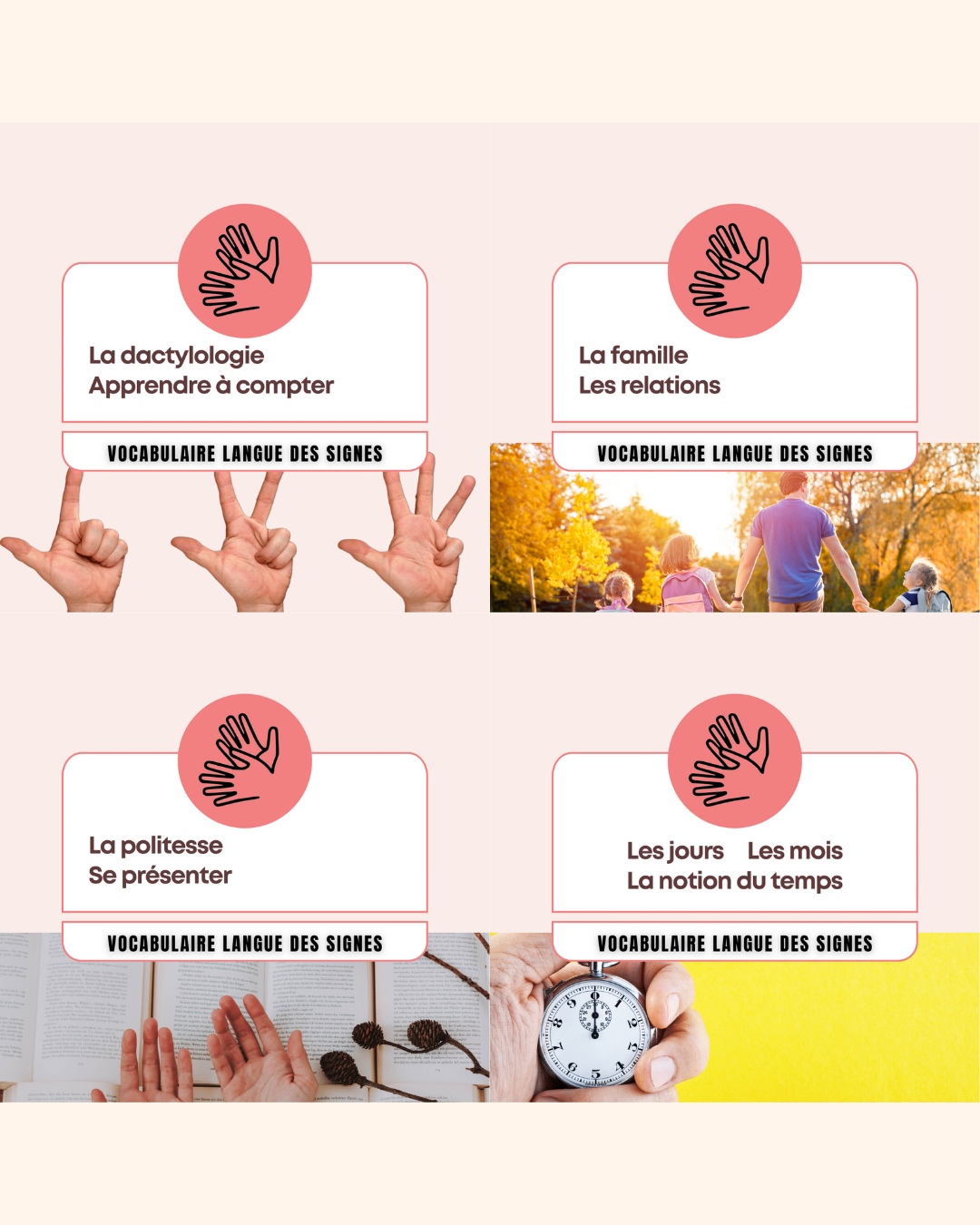 Ici vous pourrez apprendre les bases et du vocabulaire de la langue des signes française, ainsi que l'outil qu'est le bébé signe .
